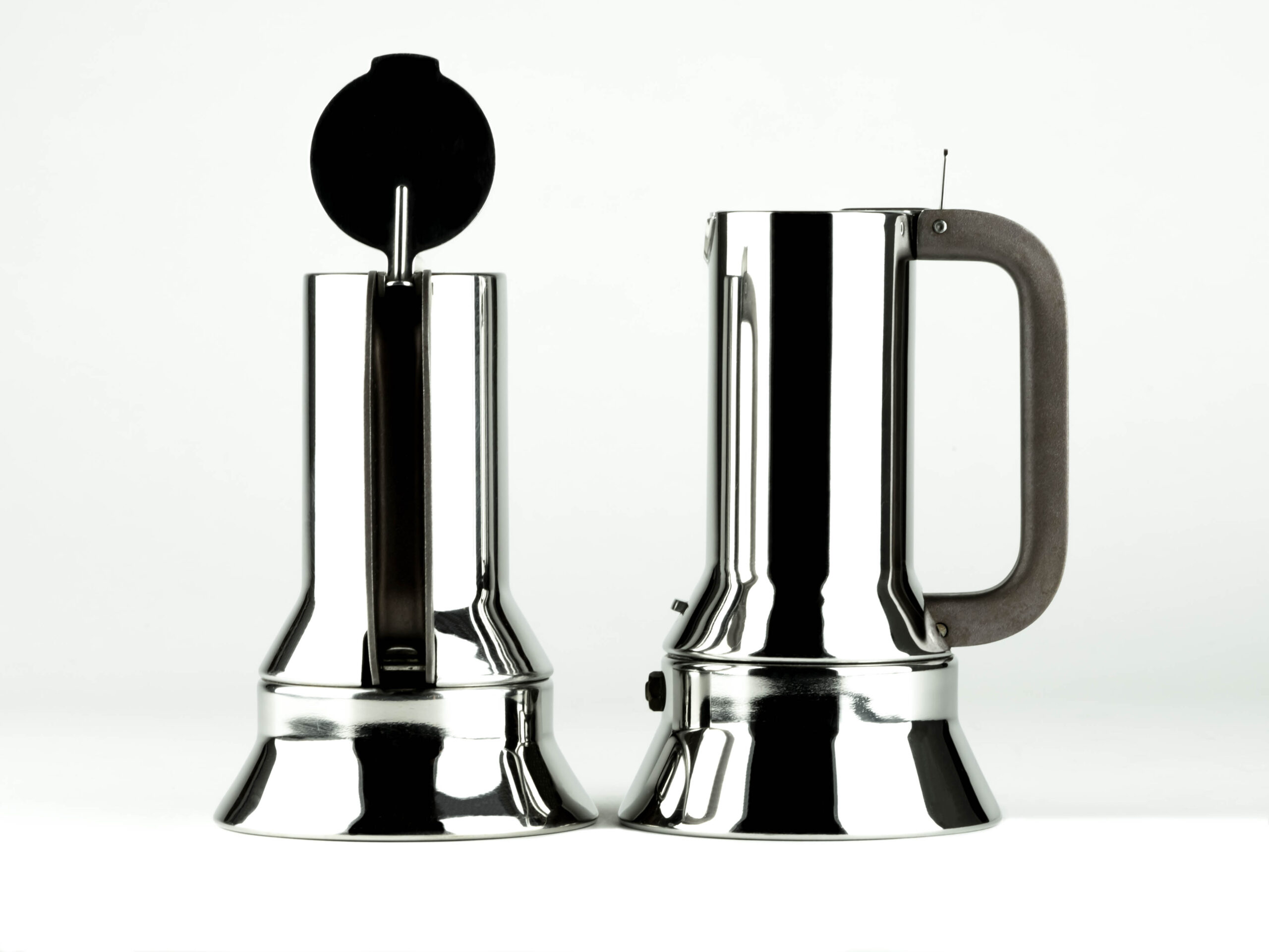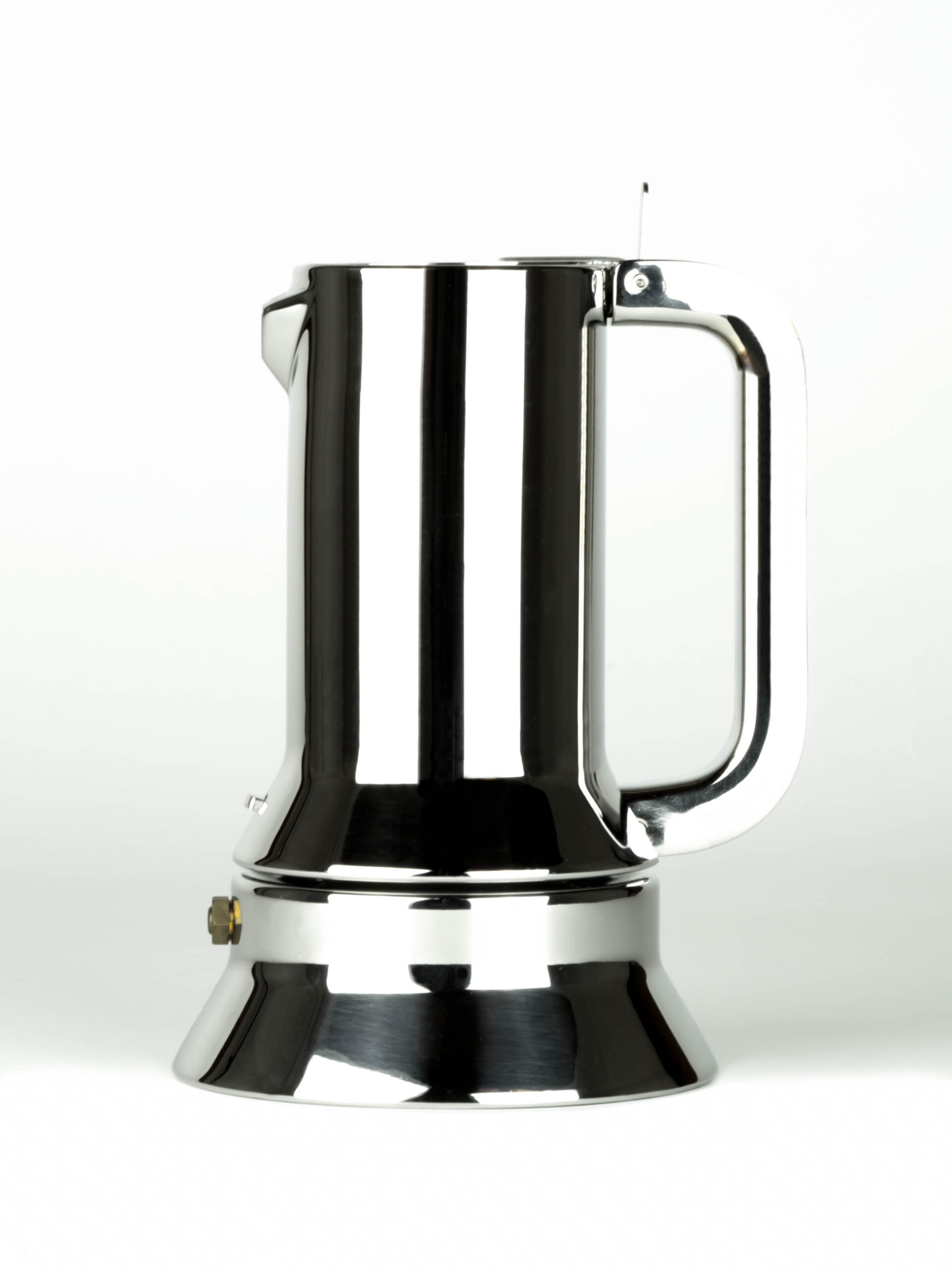 The 9090 is original not only for its shape but also for some functional innovations, such as the enlarged base that allows to maximise heat absorption, the anti-drip spout and the lever lock that allows to open the espresso maker with a simple gesture of the hand. It was the first espresso maker made in stainless steel.