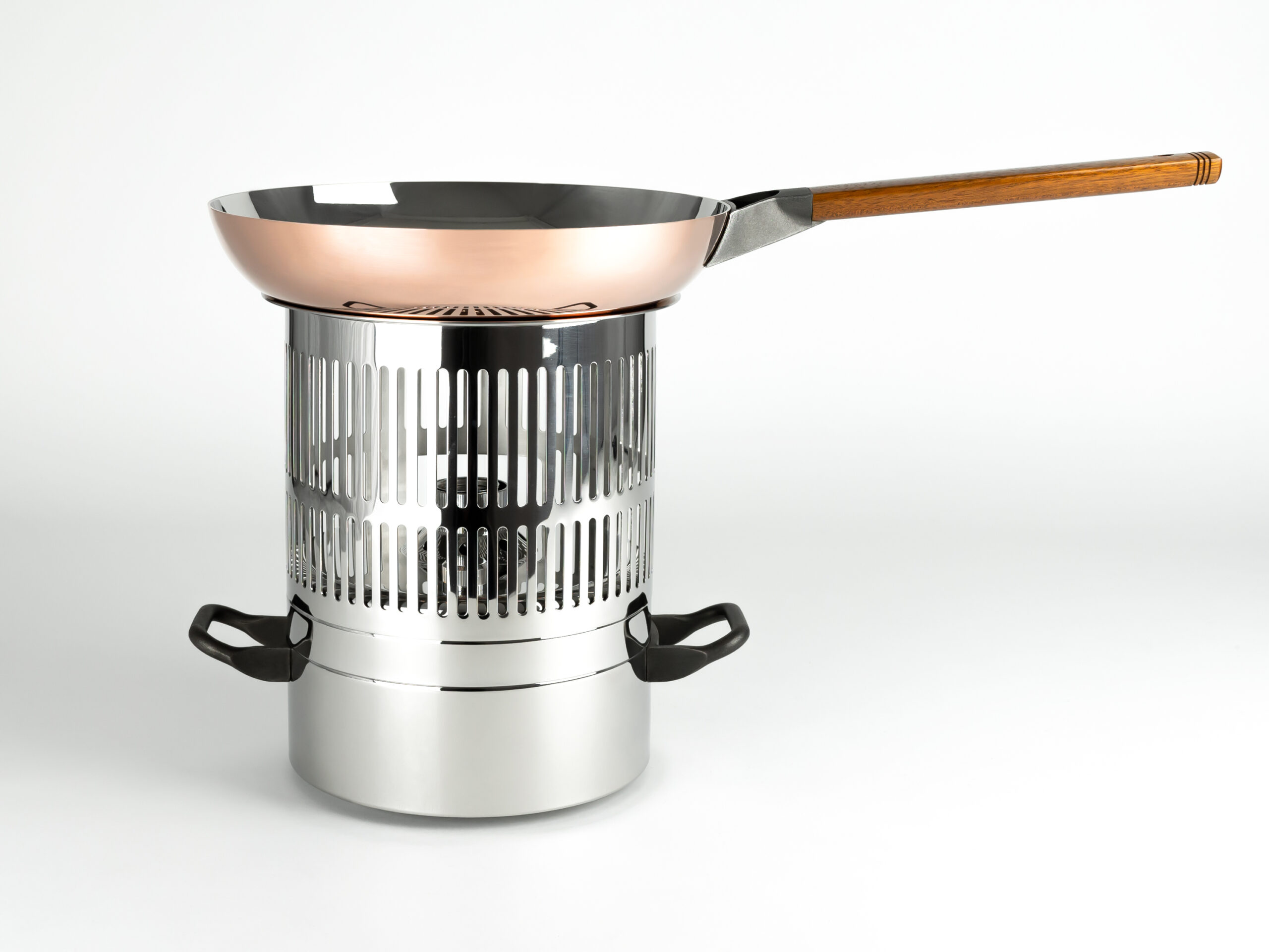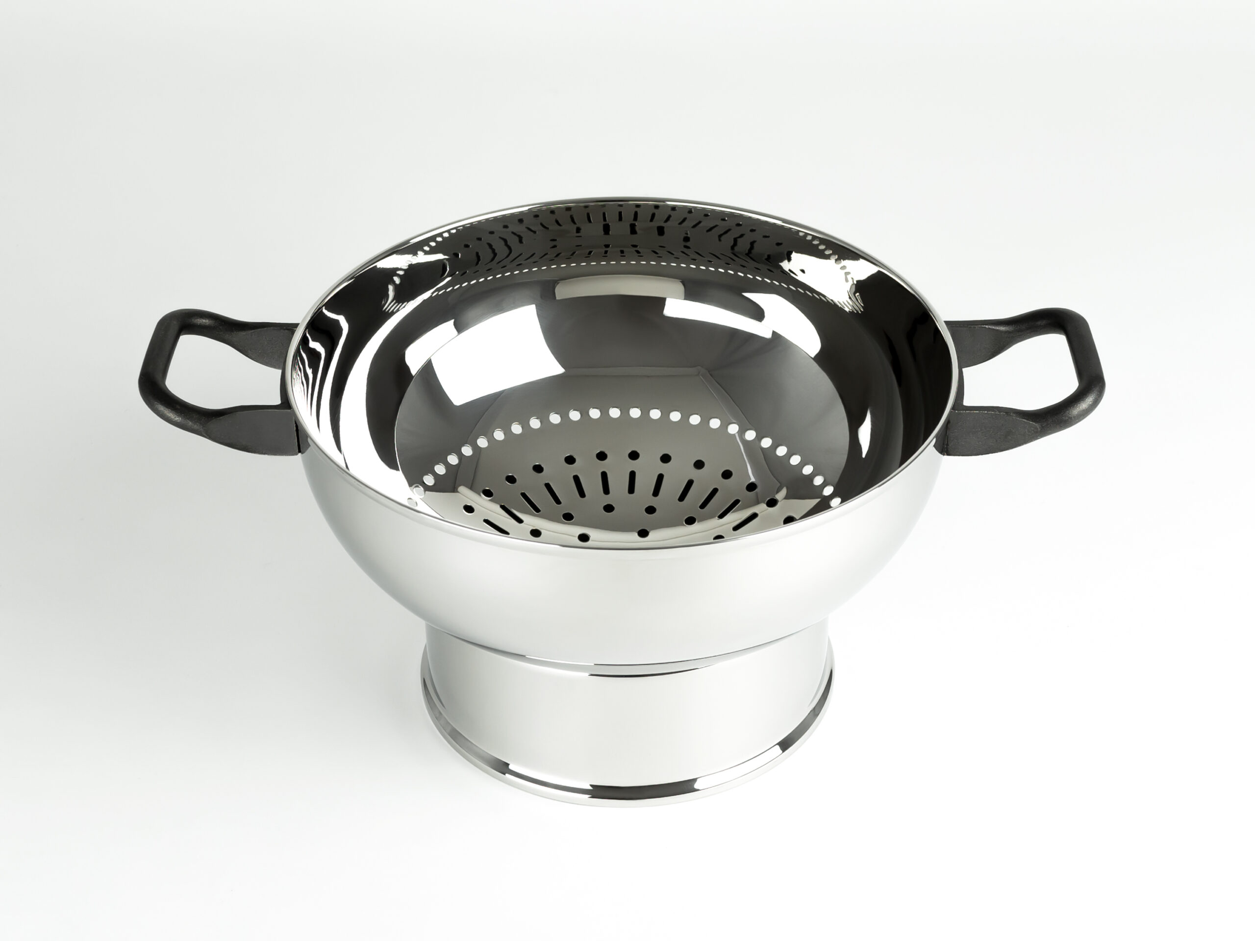 1986.1The “La Cintura di Orione” cookware set was developed in consultation with renowned and Michelin-starred chefs Alain Chapel, Raymond Thuilier, Pierre and Michel Troisgros, Roger Verge’, Gualtiero Marchesi and Angelo Paracucchi, and under the coordination of gastronomy expert Alberto Gozzi. The materials and shapes of the respective cookware components have been chosen and designed to assure optimal results for a range of specific dishes.